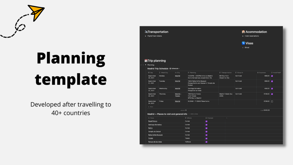 After travelling to 40+ countries and making lots of mistakes, I have developed a template that's simple but that has everything I ever need when I'm planning my trips.