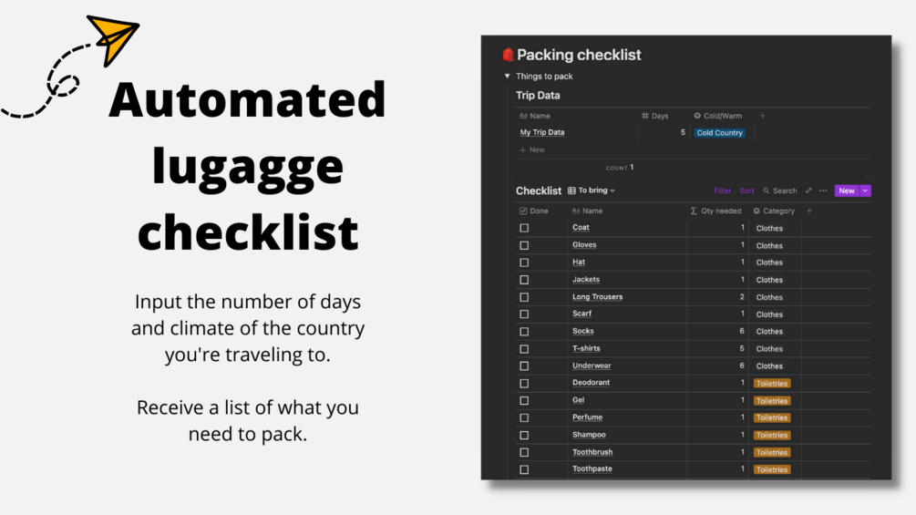 An automated luggage checklist that just by entering how long your trip is and the type of climate, it'll tell you what you need to pack (no more forgetting the dirty clothes bag)